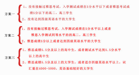 针对学员:词汇4000左右,大学4级以上水平;需要将已有的英语能力转化为雅思托福考试能力;急需提高英语能力和应试技巧;曾经参加雅思考试5分左右,托福70分左右;3个月时间准备雅思考试
