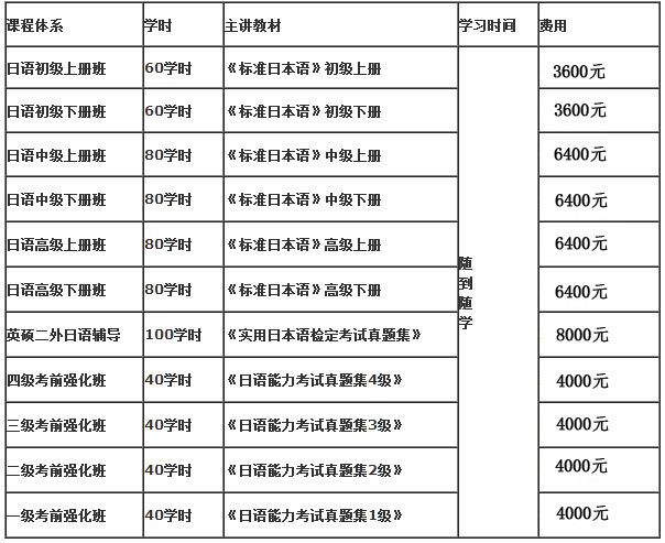 说明:学习费用包括教材、语音资料、练习资料等所有日语学习的费用。 留日教育学博士不定期进行口语指导。
